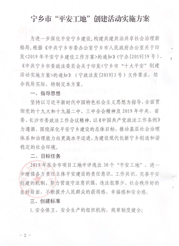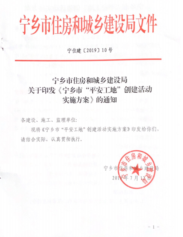 《關于印發寧鄉市“平安工地”創建活動實施方案的通知》(寧住建[2019]10號(1)